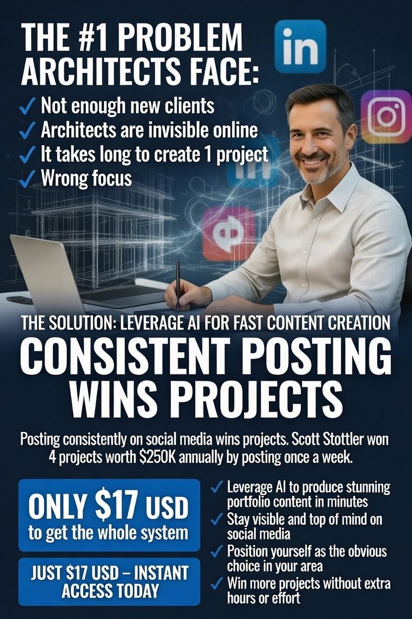 Social media is one of the most powerful tools for architects—it's visual, local, and people in your area will respond to the work you share. But here's the issue: if you're posting every day, every two days, or weekly, you need 50+ projects just to cover the year. Most architects only have a handful of completed projects. So what do you post for the other 52 weeks?