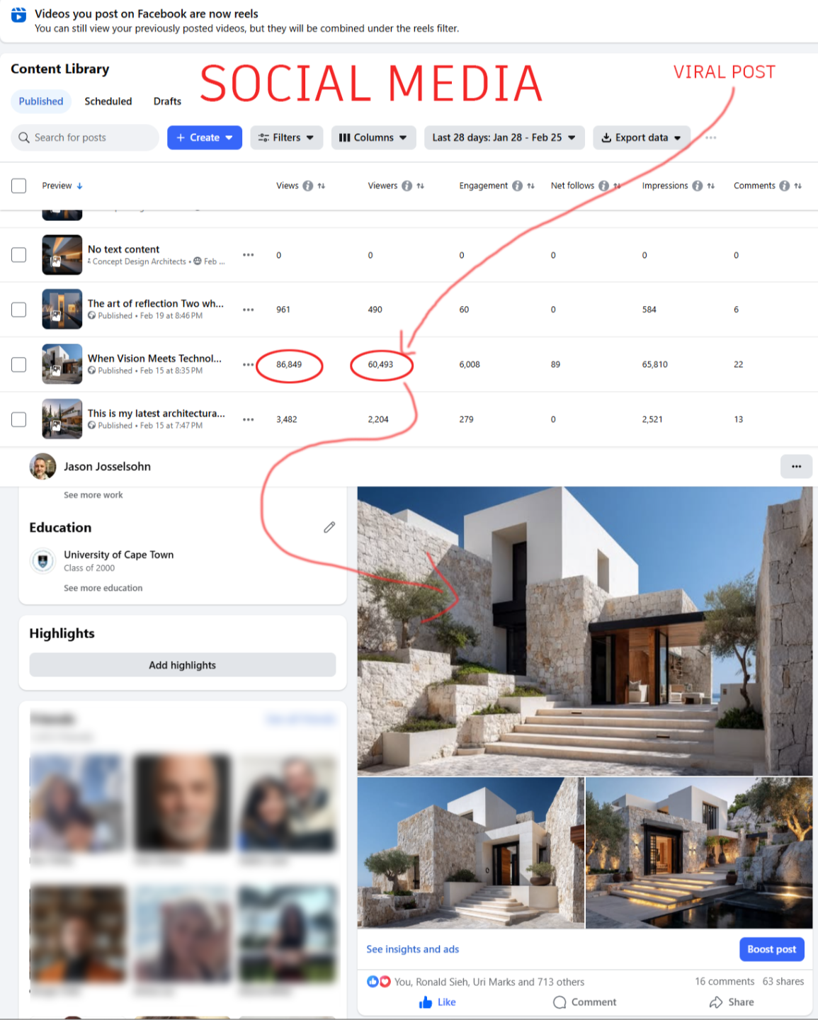 - Position yourself as the go-to expert in your network. Your social circle — friends, family, past clients, colleagues, acquaintances — already knows and trusts you. By showing up regularly with compelling work and clear expertise, you move from being someone they vaguely know to being the architect they recommend without hesitation.