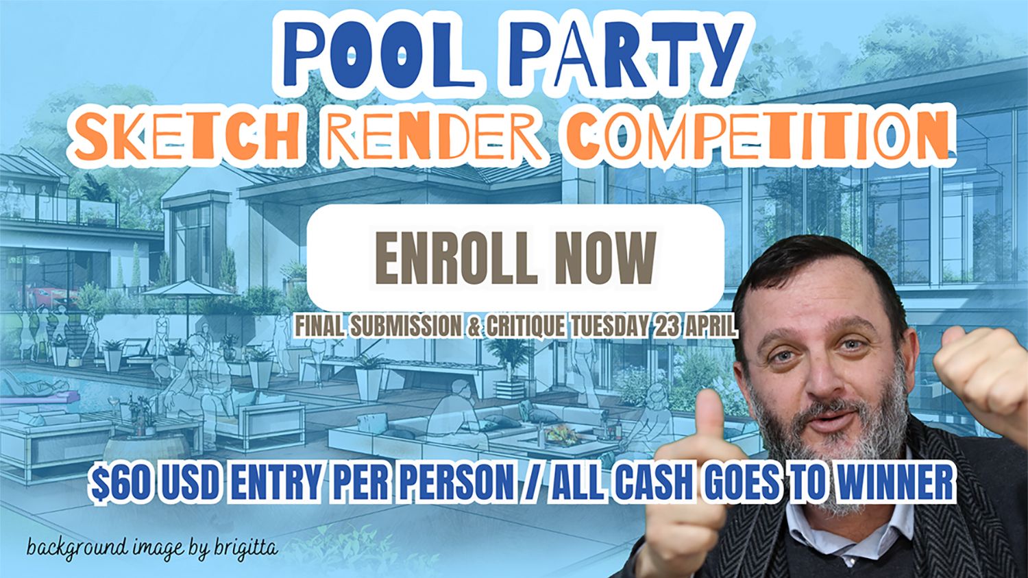 - Disqualification for use of external software's, like Lumion, D5 Render , Twin Motion..